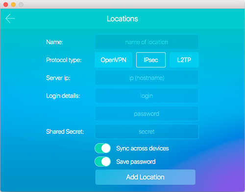 Setup your VPN servers and find them in the list of locations. Manage all the servers in easy-to-use interface. No limits for traffic and locations. Sync across all devices.